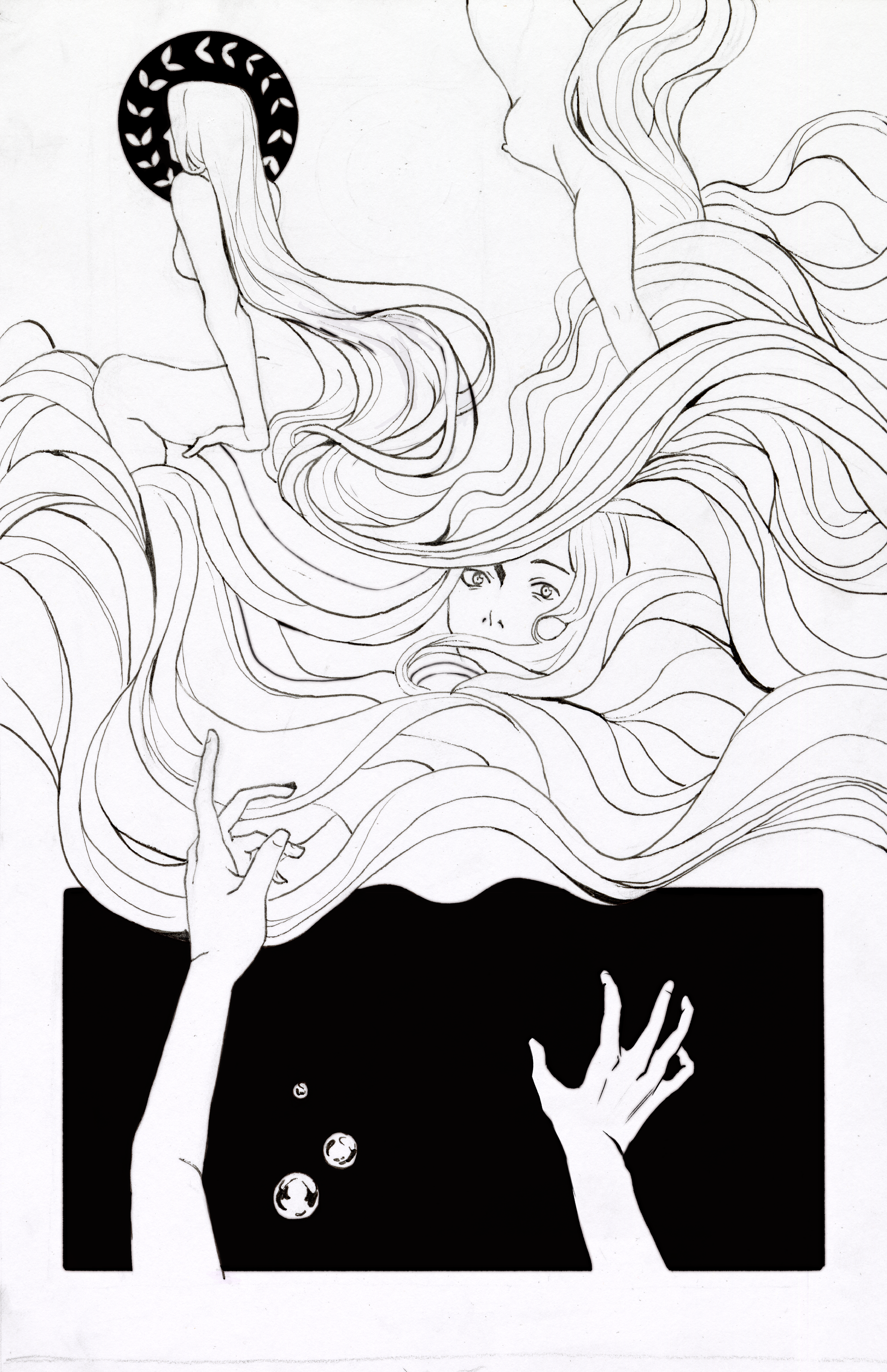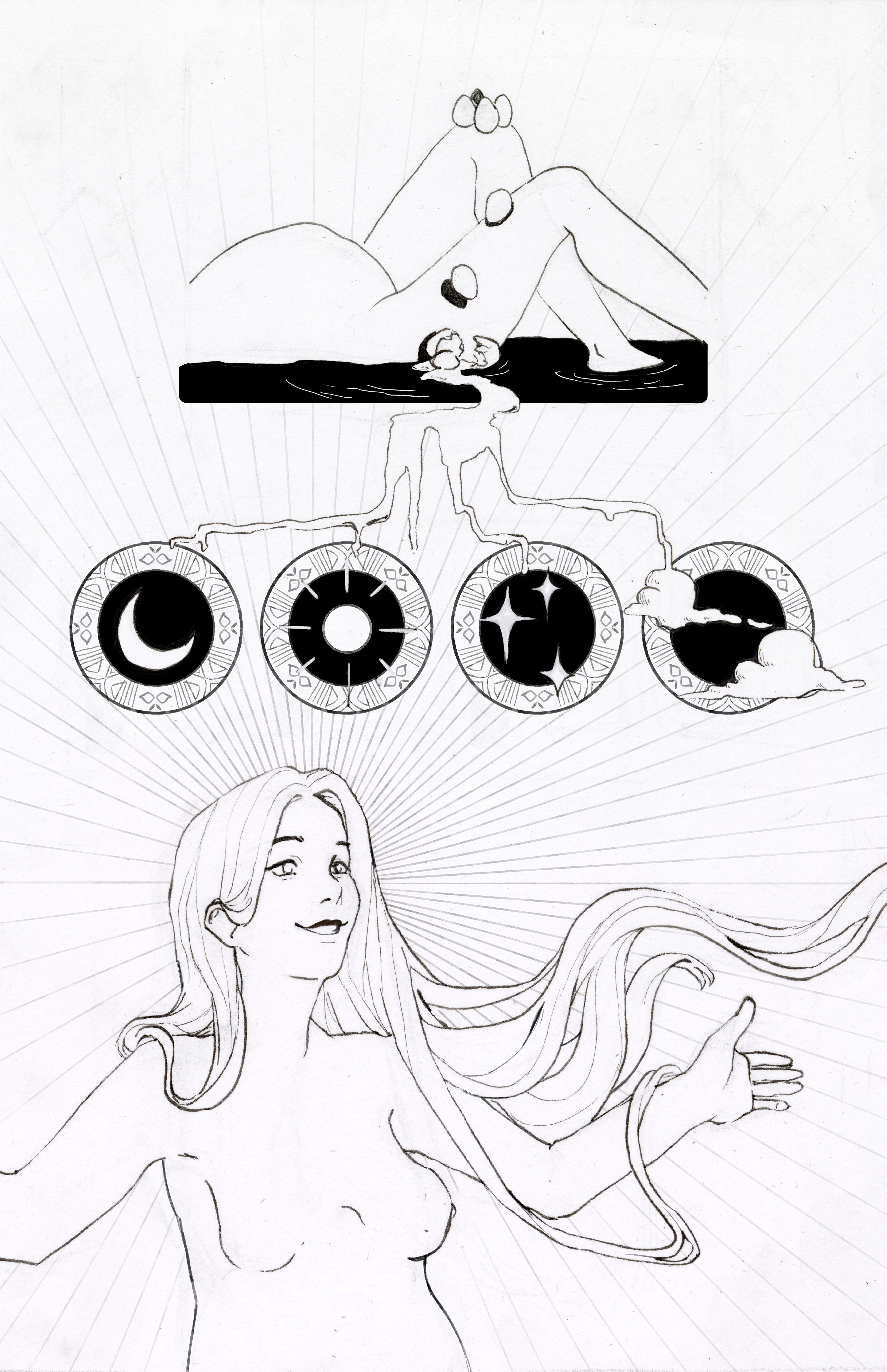Based on the Kalevala, a Finnish creation myth, this 3-page silent comic focuses on Ilmatar, the goddess who gave birth to the first man after a pregnancy spanning centuries. Created for Cat Huang's Myth and Metaphor class during my junior year at RISD.