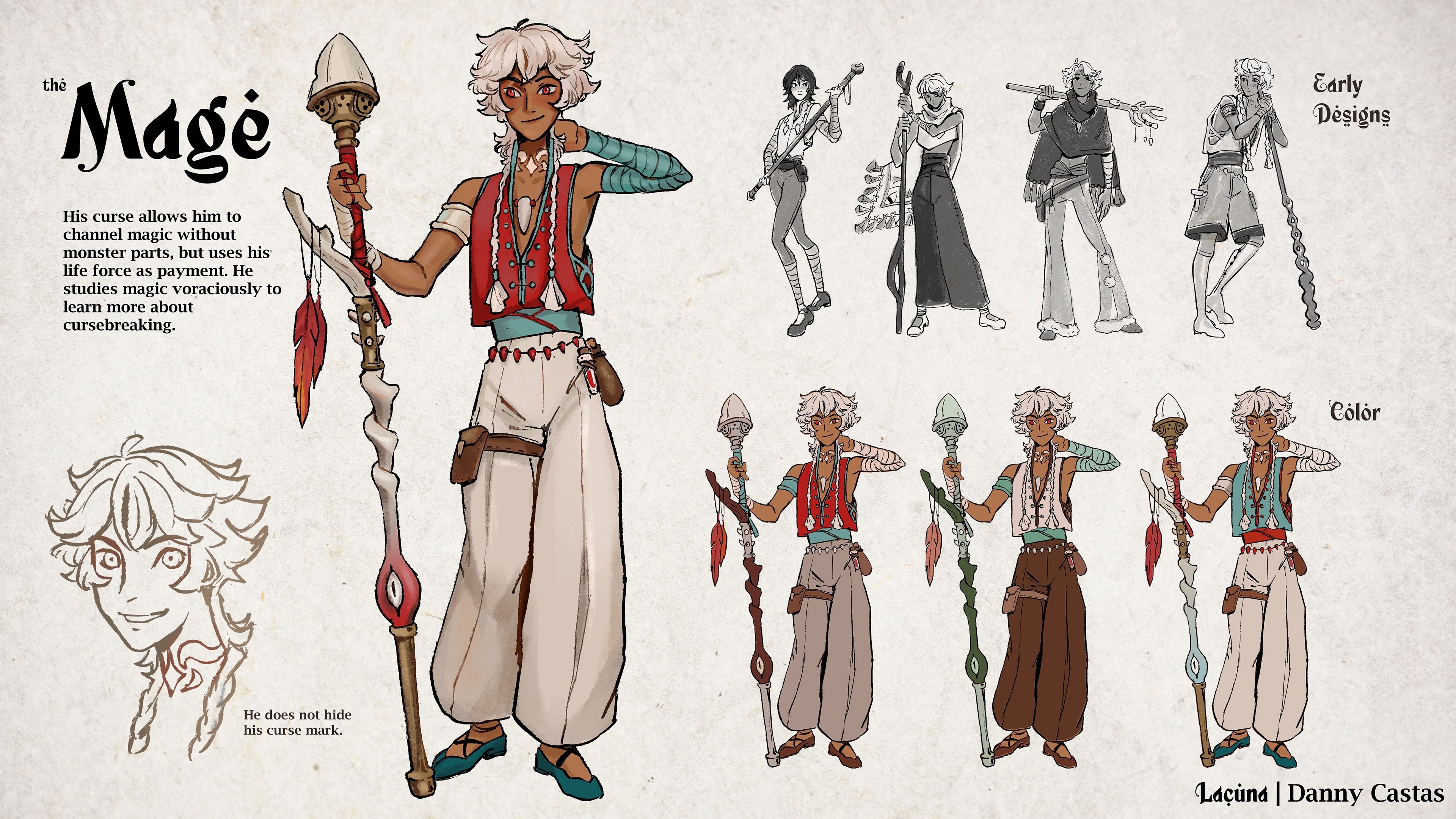 A cursed mage and a cursed village heir hunt monsters together and study the magic of the parts they harvest, trying to discover the secret behind magic and break their curses.