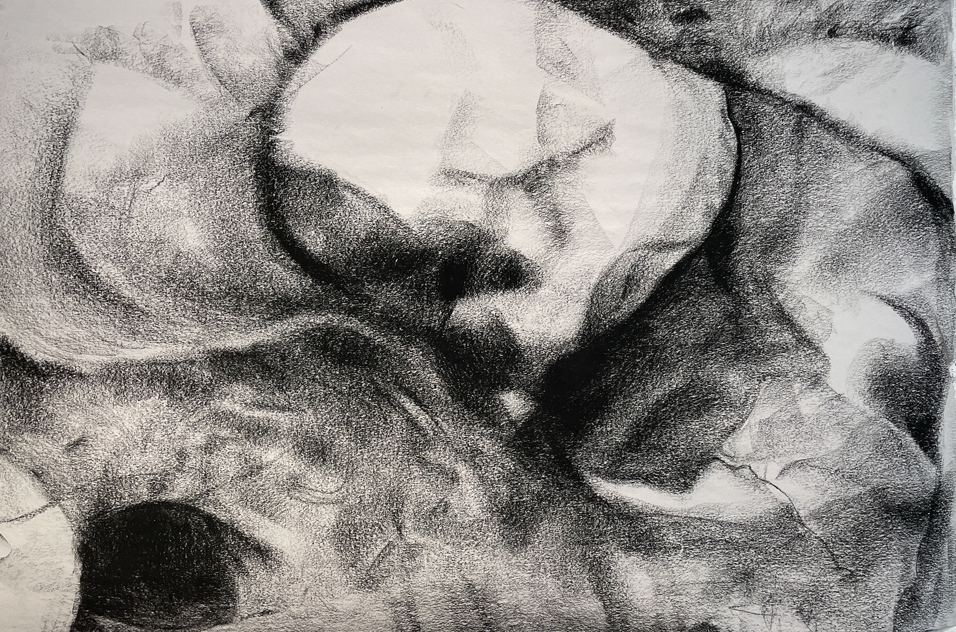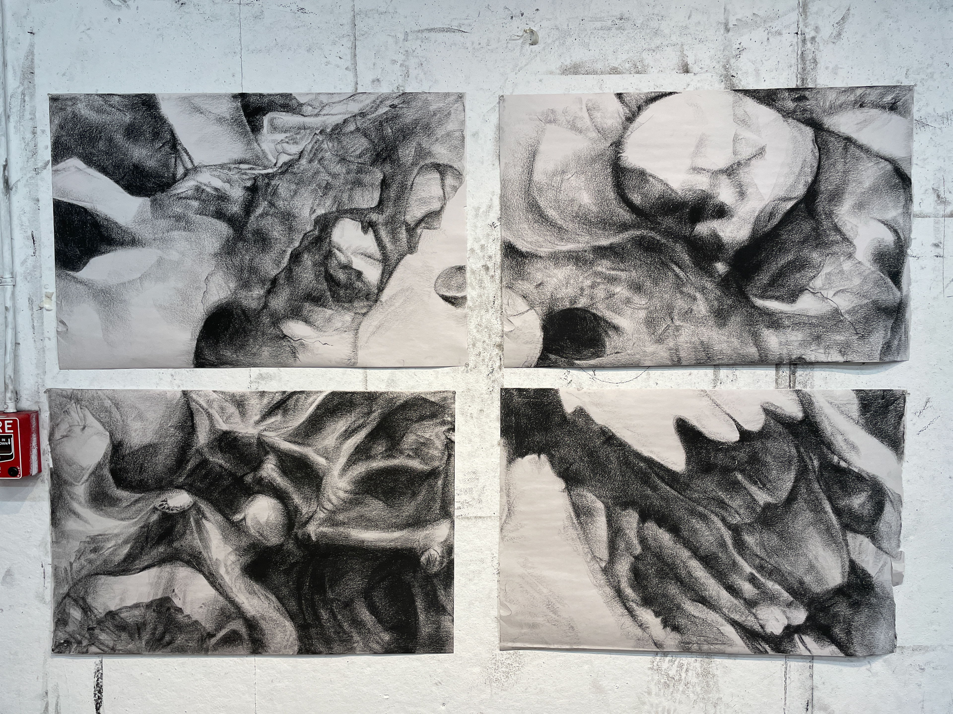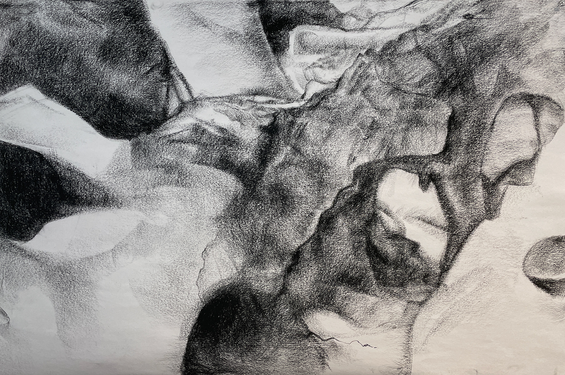 Created for 2021 fall drawing with Paddy Ginther at RISD. A series of four 24"x36" charcoal drawings of bones, magnified to unrecognizability as a study of the textures and spatial relations found within each object.