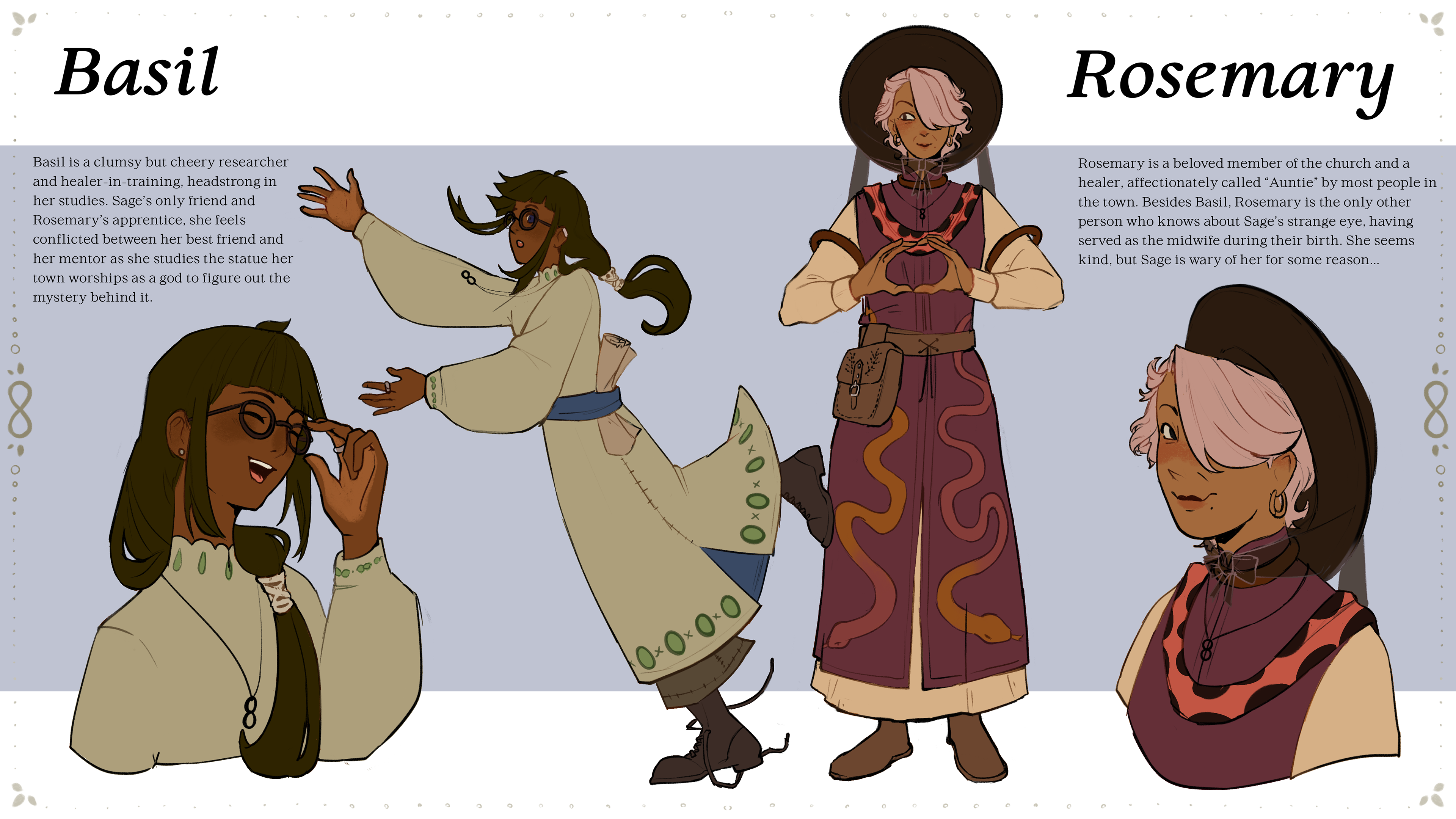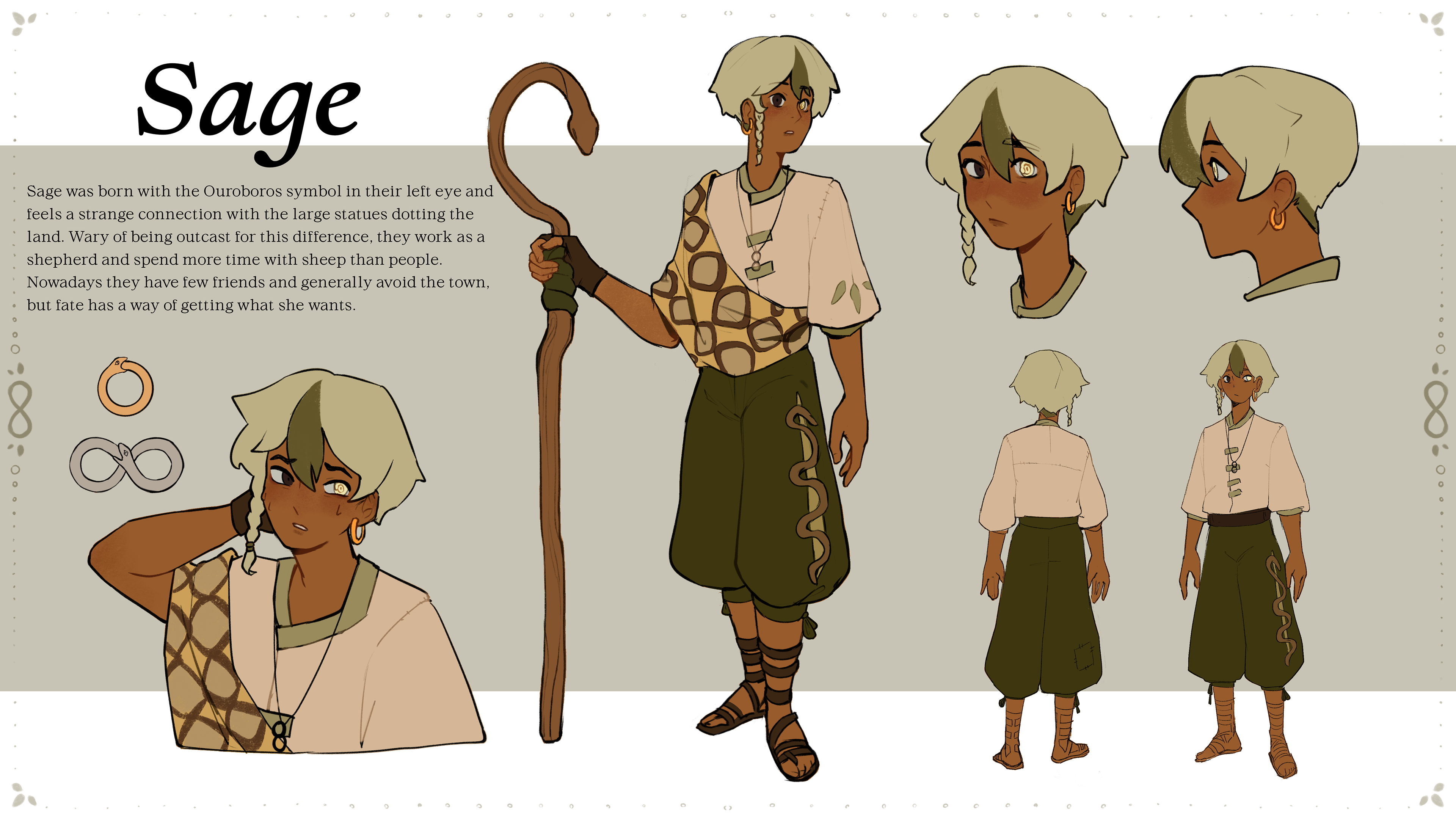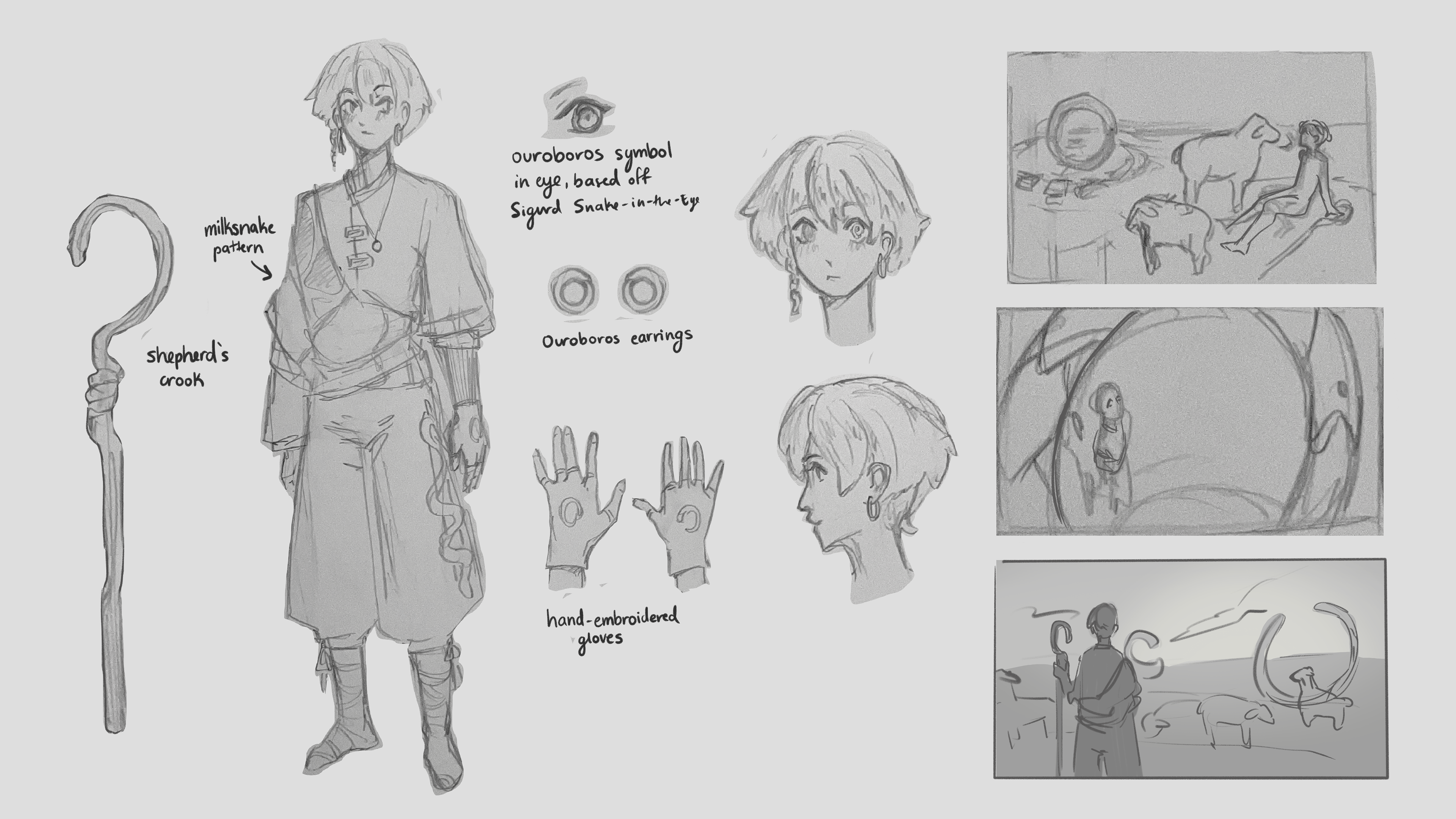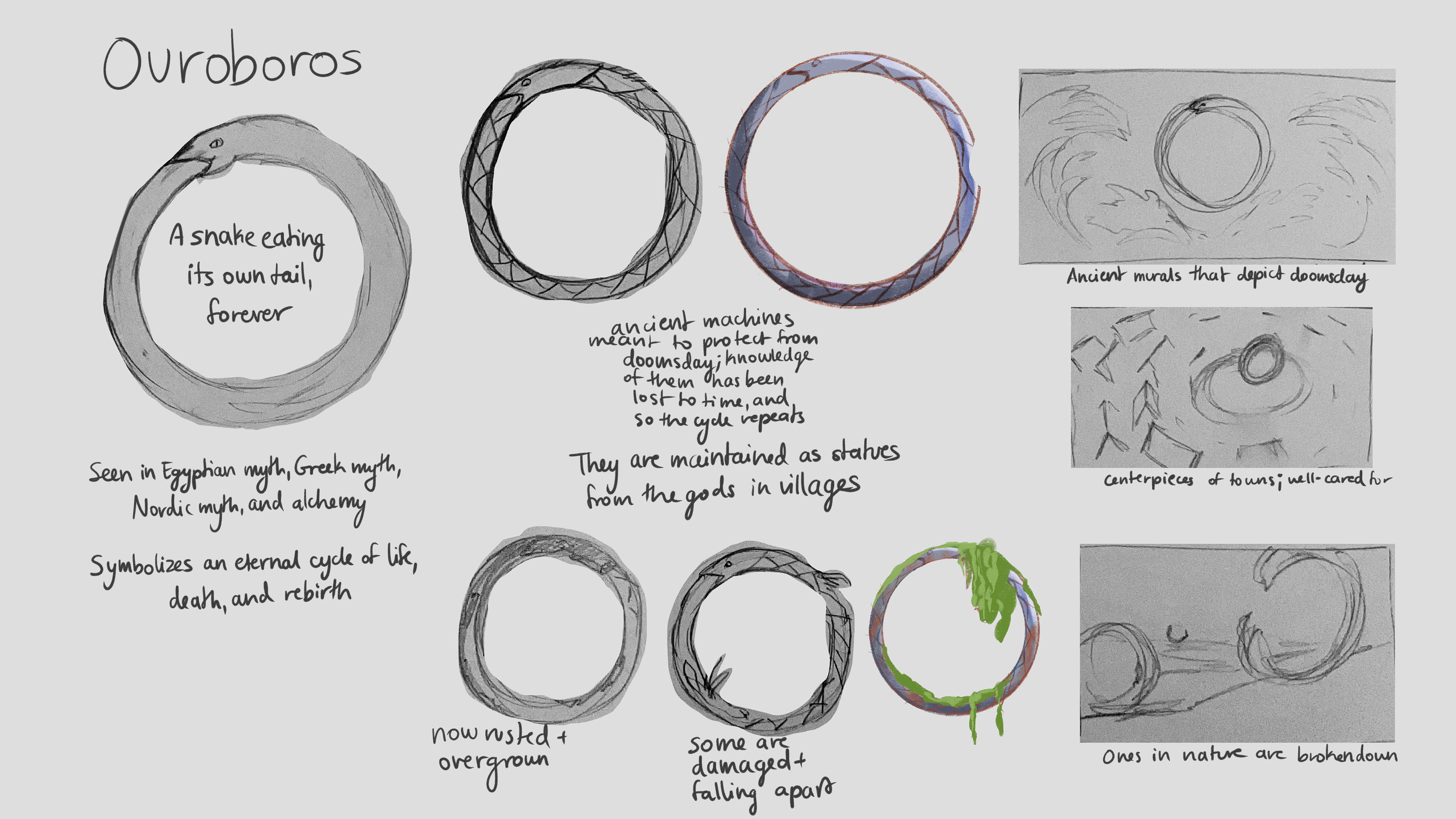 Using the "Ouroboros" symbol as inspiration, this mini-visdev project focused on creating a primary character, two supporting characters, and environment design.
